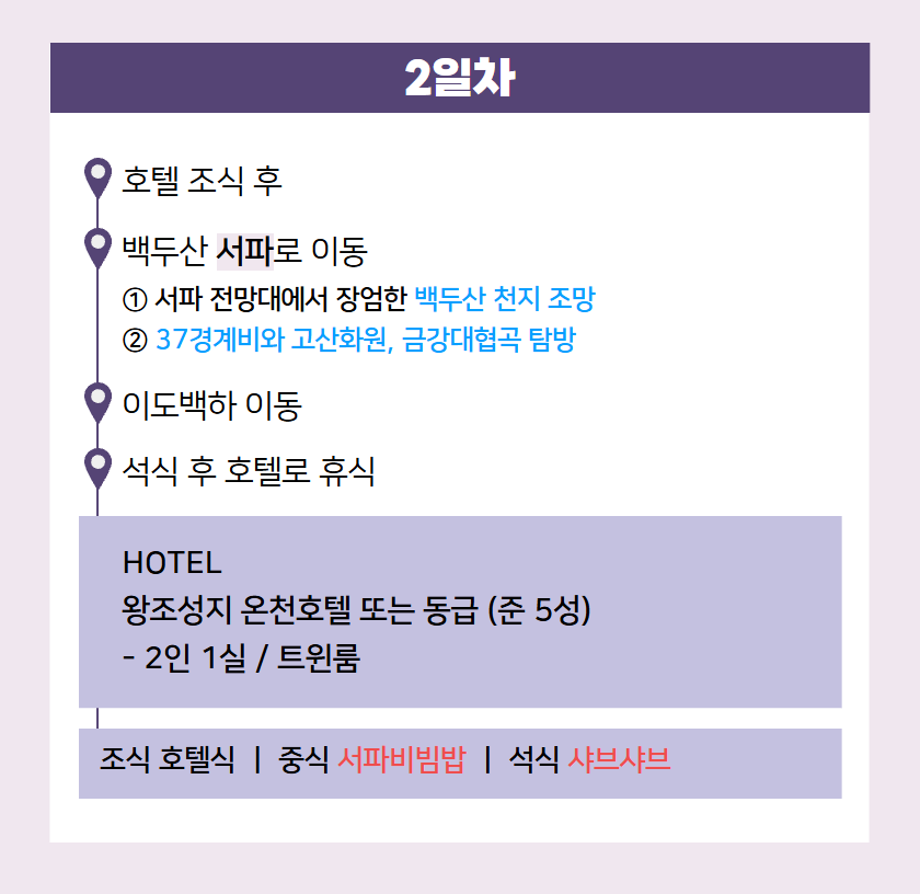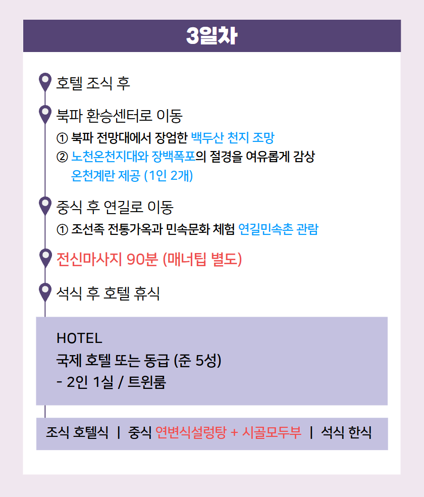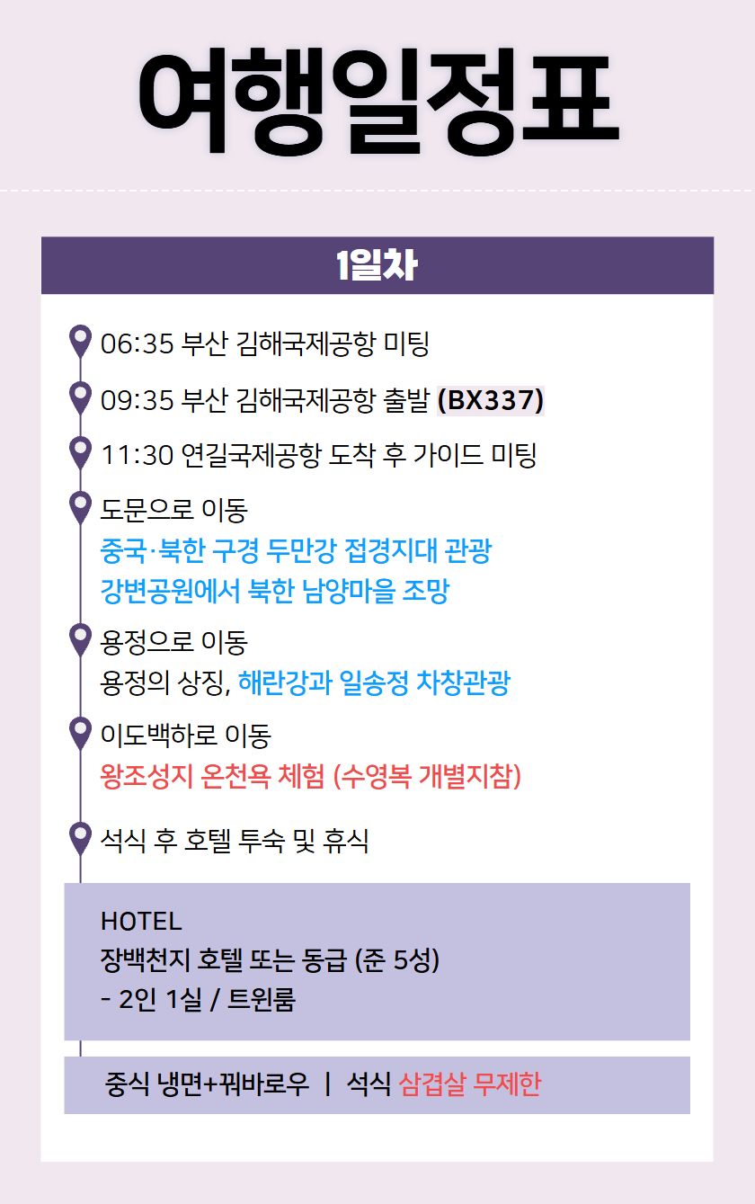 3️⃣ 현지 기상 및 천재지변으로 백두산 입산이 불가할 수 있으며,