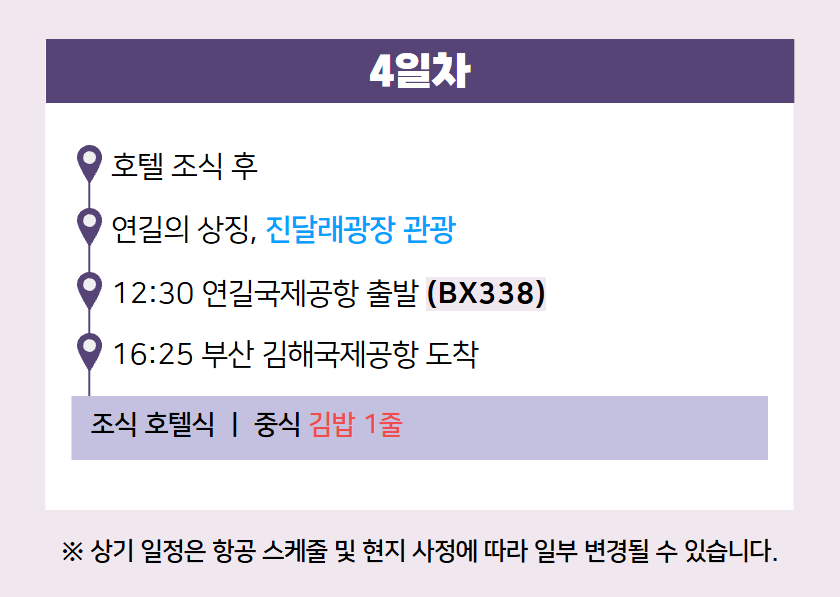 4️⃣ 항공 스케줄 또는 현지 사정에 따라 일정이 일부 변경될 수 있습니다.