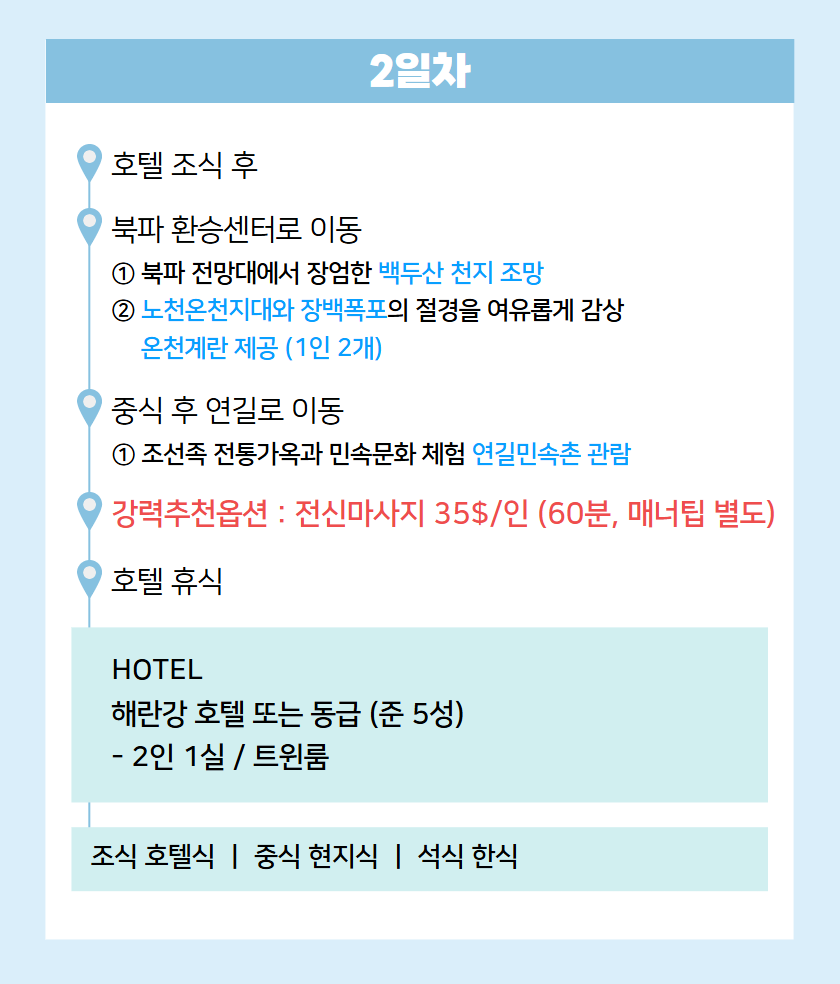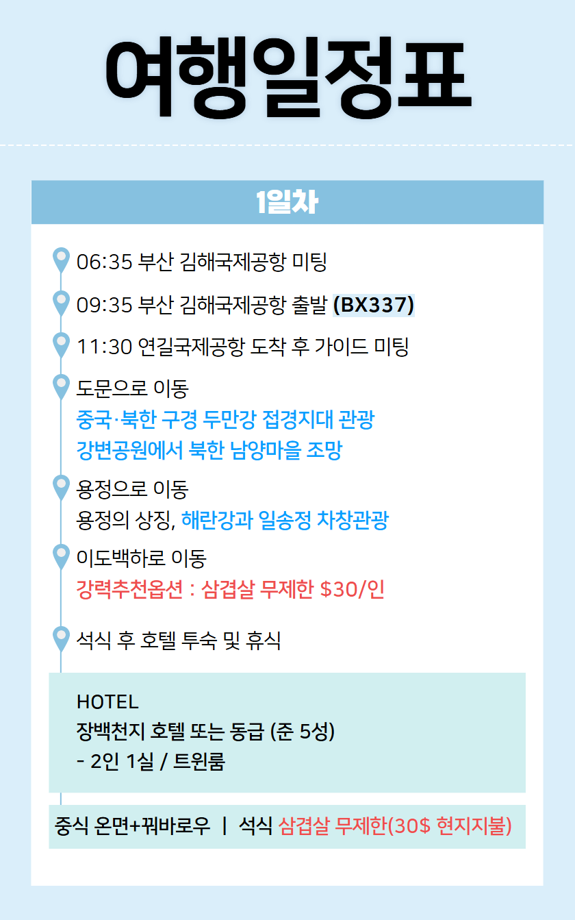 3️⃣ 현지 기상 및 천재지변으로 백두산 입산이 불가할 수 있으며,