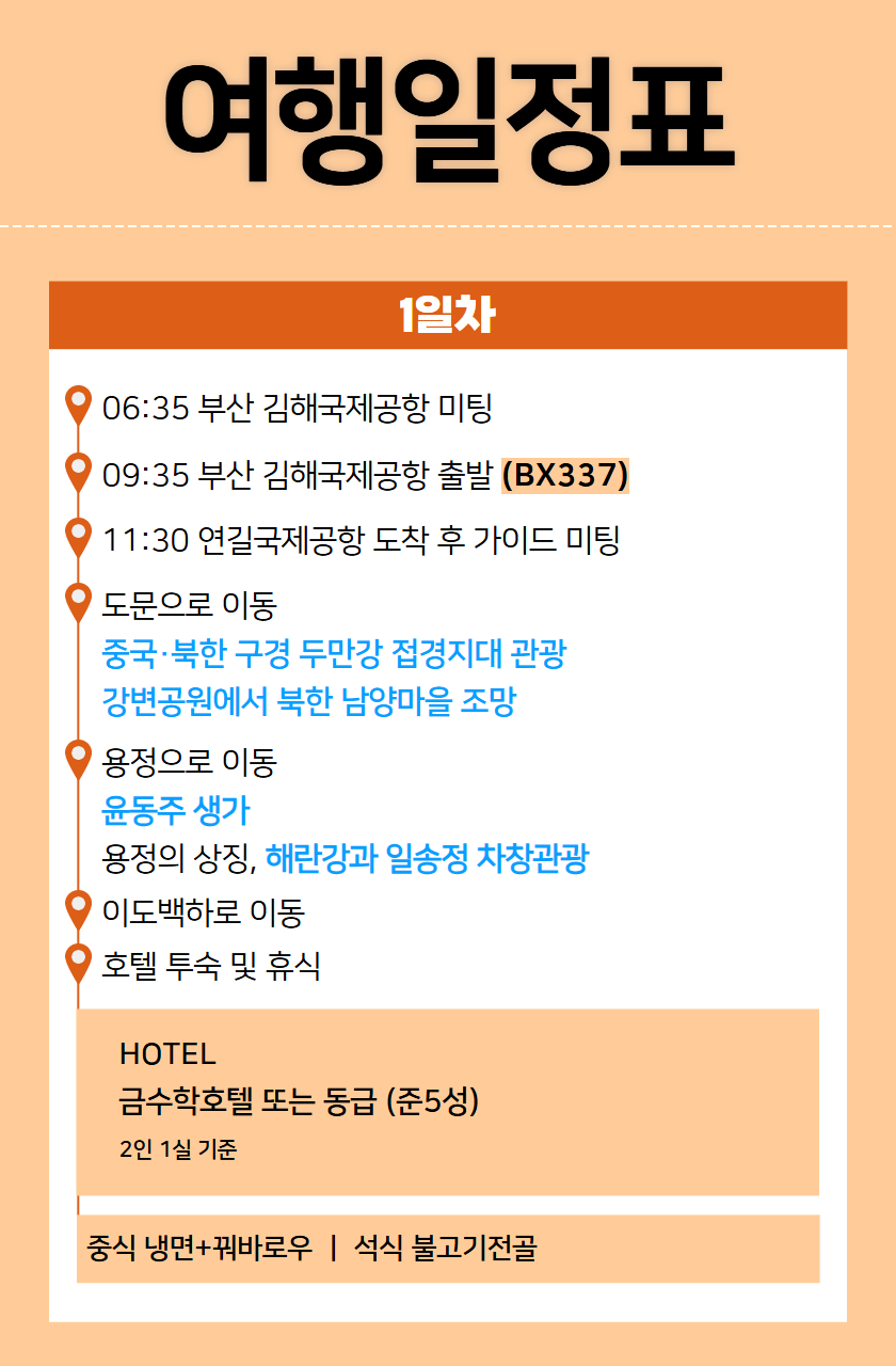 5️⃣ 연길 공항 도착 후 현지 가이드가 미팅하여 전 일정 진행