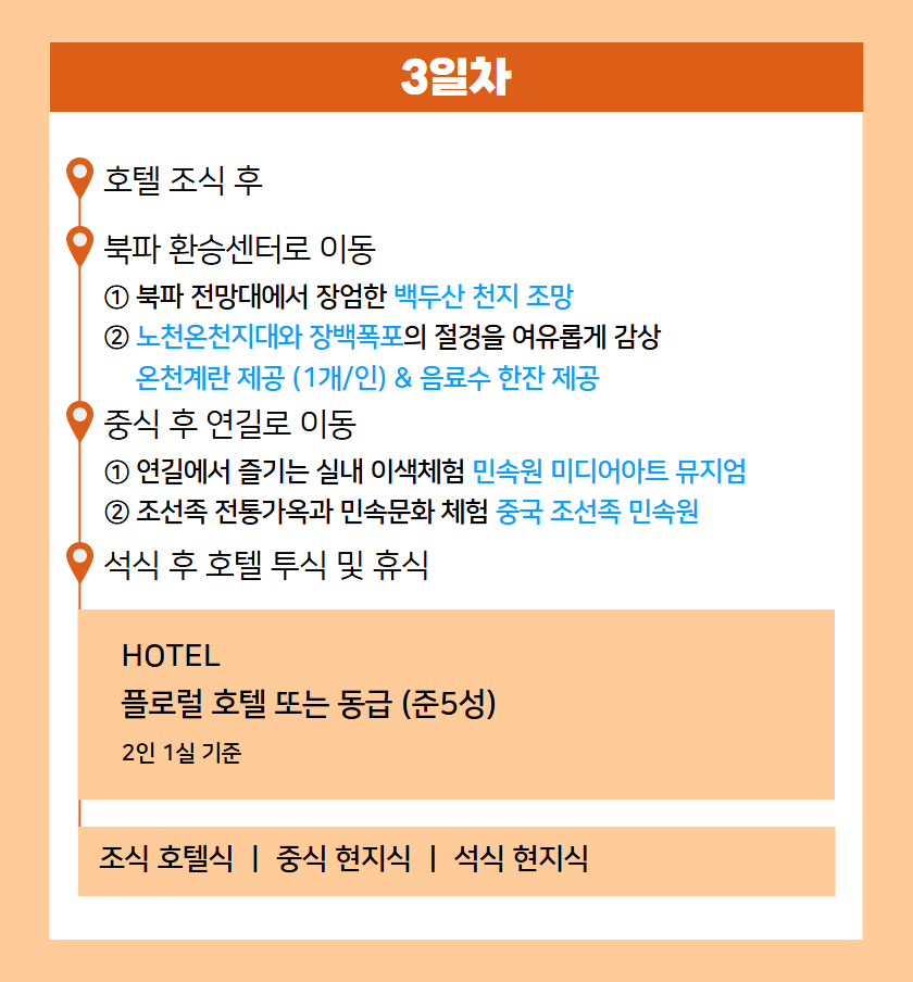 4️⃣ 현지 기상 및 천재지변으로 백두산 입산이 불가할 수 있으며,