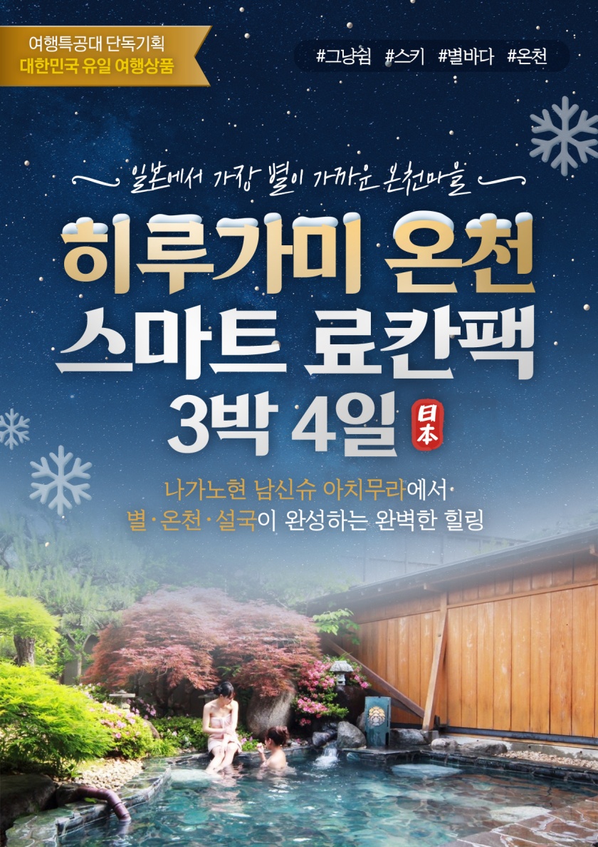 해외패키지 > [전국출발] 스마트팩 > [스마트팩] 나가노현 히루가미 온천 자유여행 3박4일 패키지|료칸+조식3회+석식3회+송영차량 포함