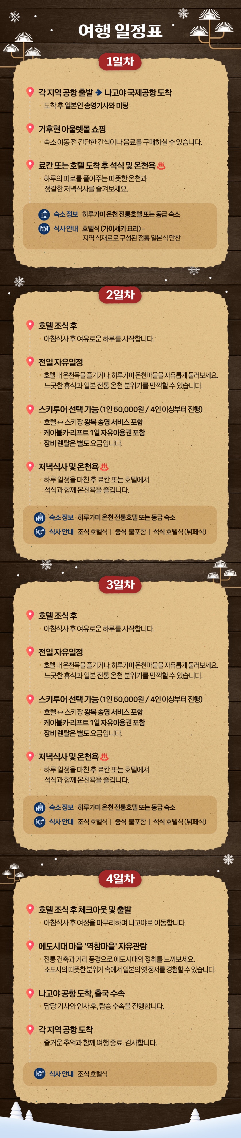 [스마트팩] 나가노현 히루가미 온천 자유여행 3박4일 패키지|료칸+조식3회+석식3회+송영차량 포함