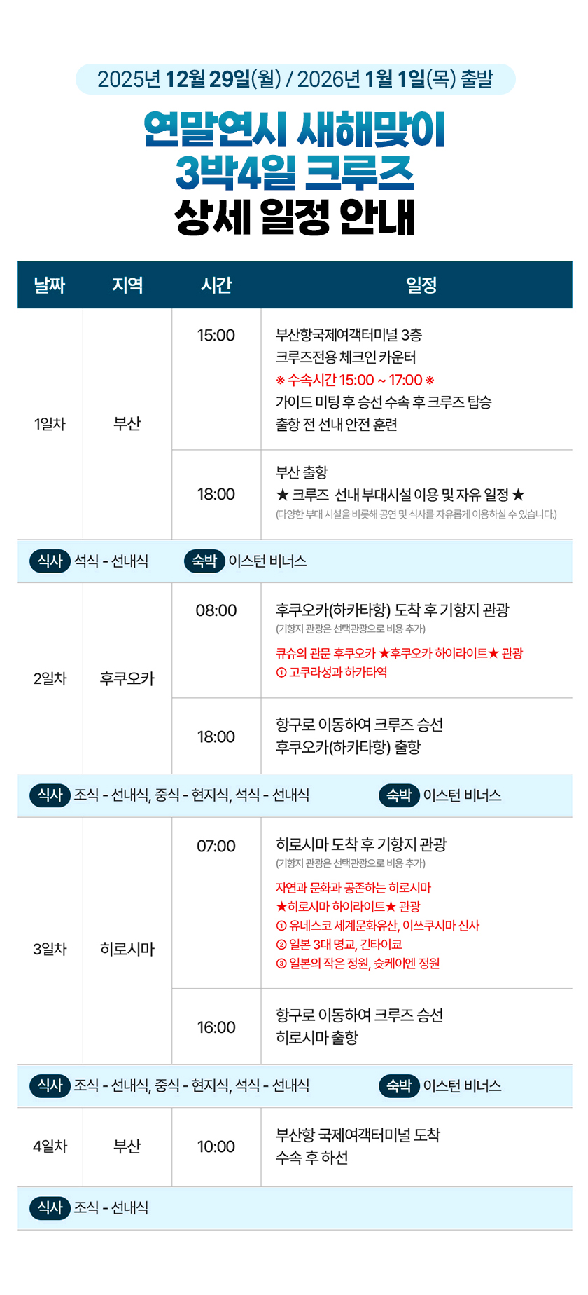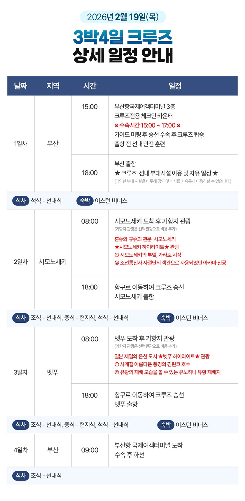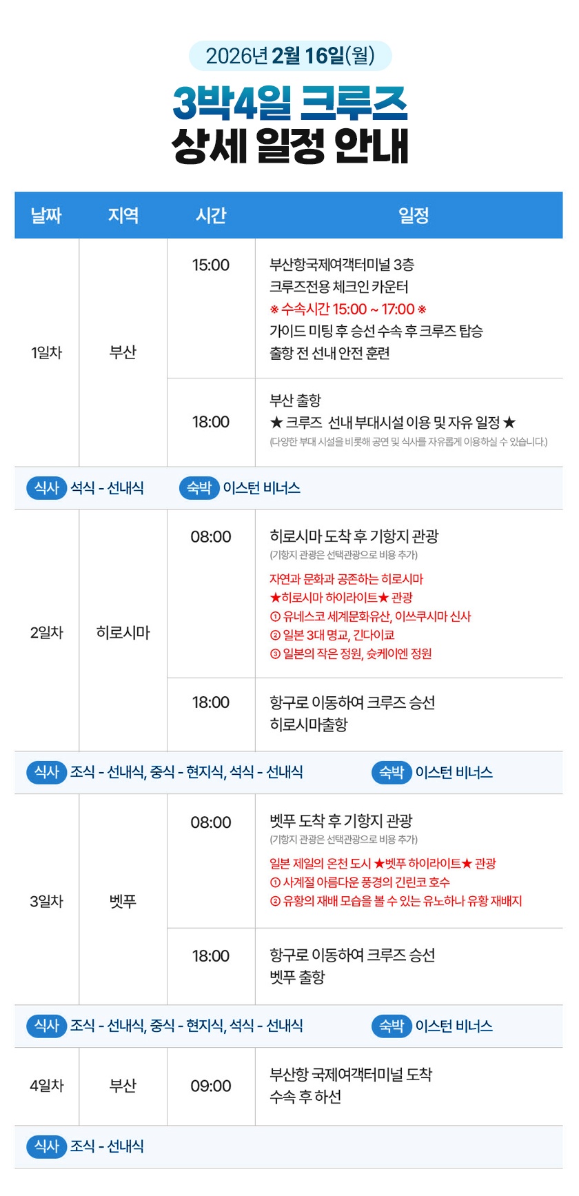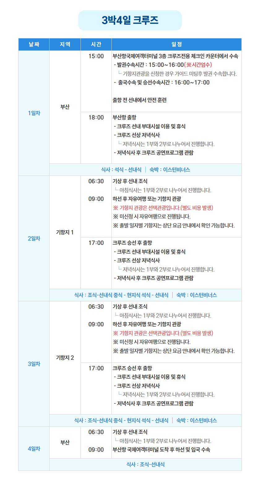 부산출발 일본 크루즈 여행 이스턴비너스호 3박4일