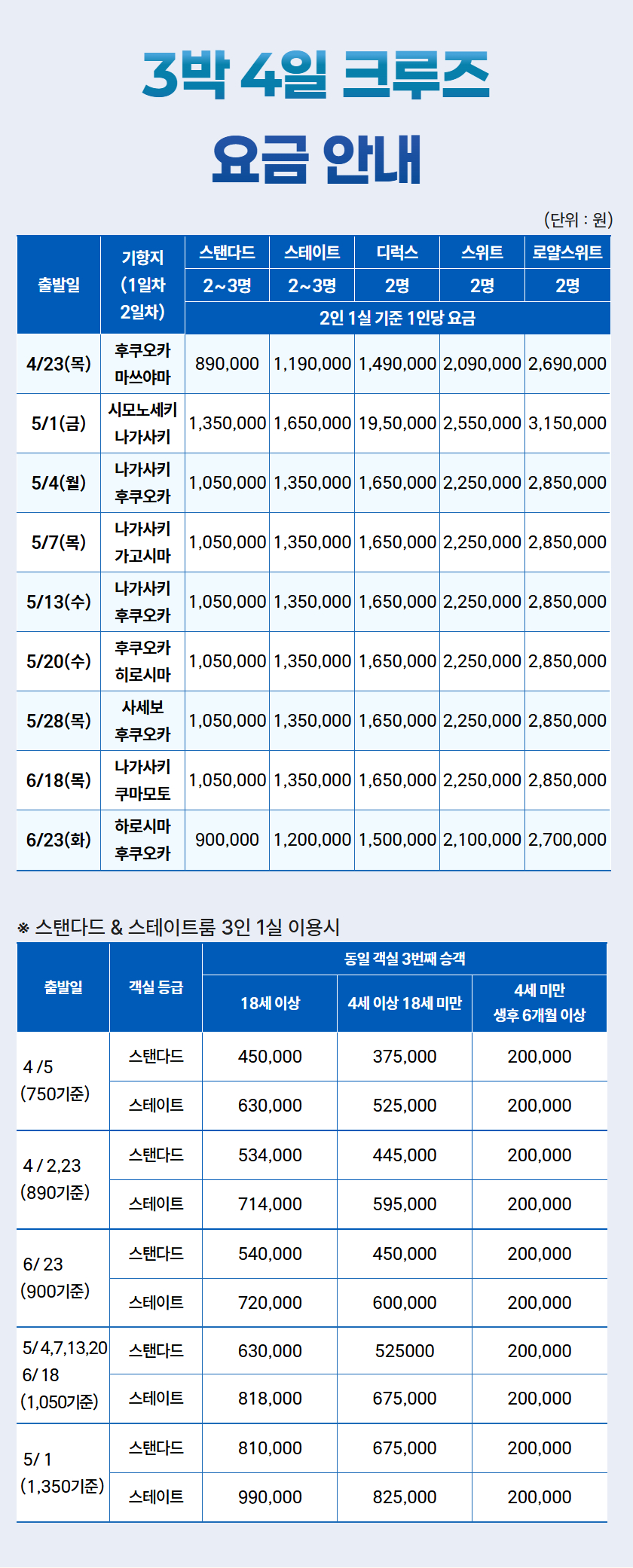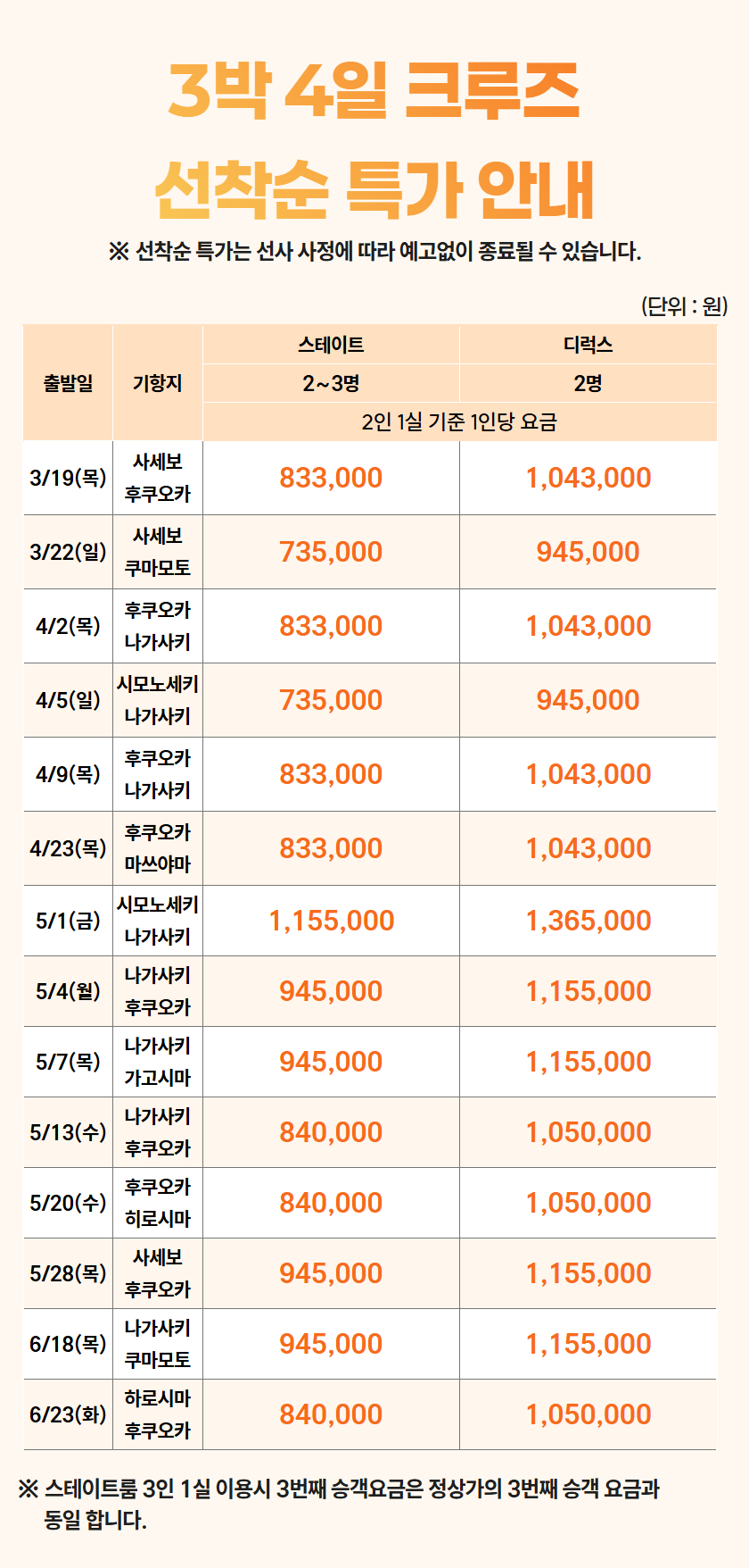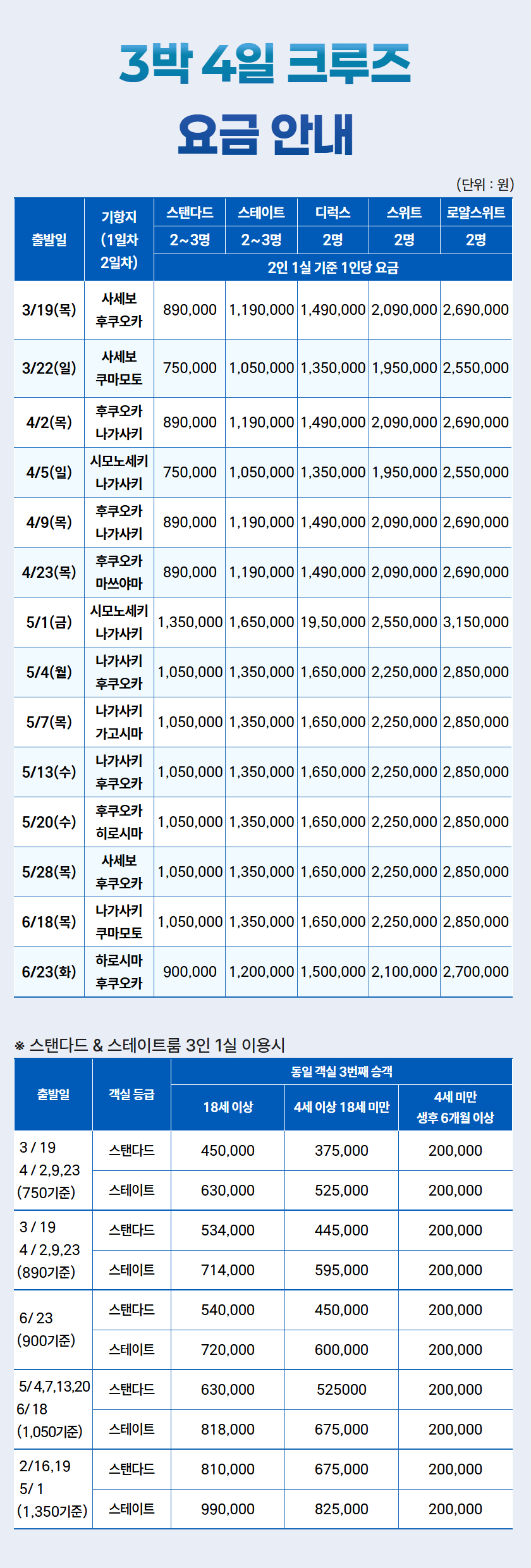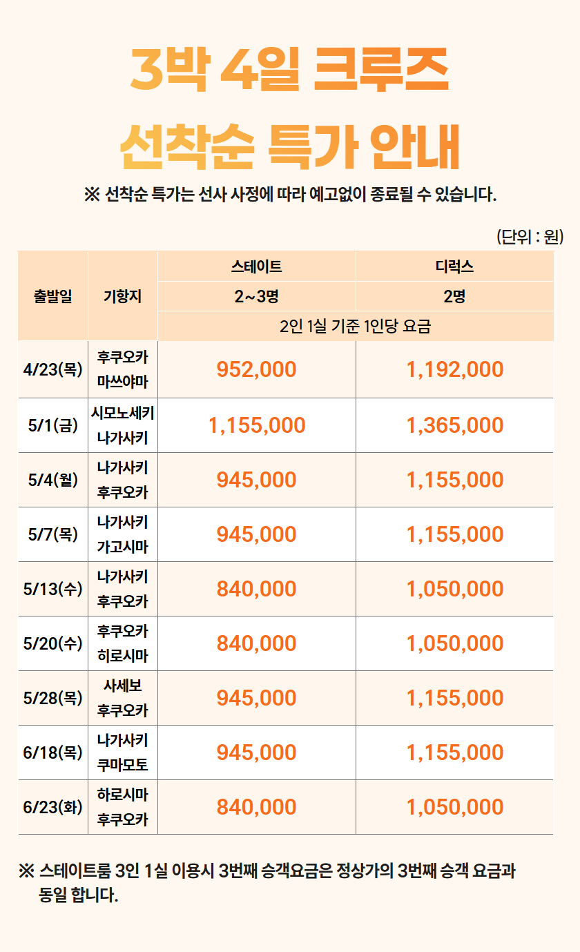 부산출발 일본 크루즈 여행 이스턴비너스호 3박4일