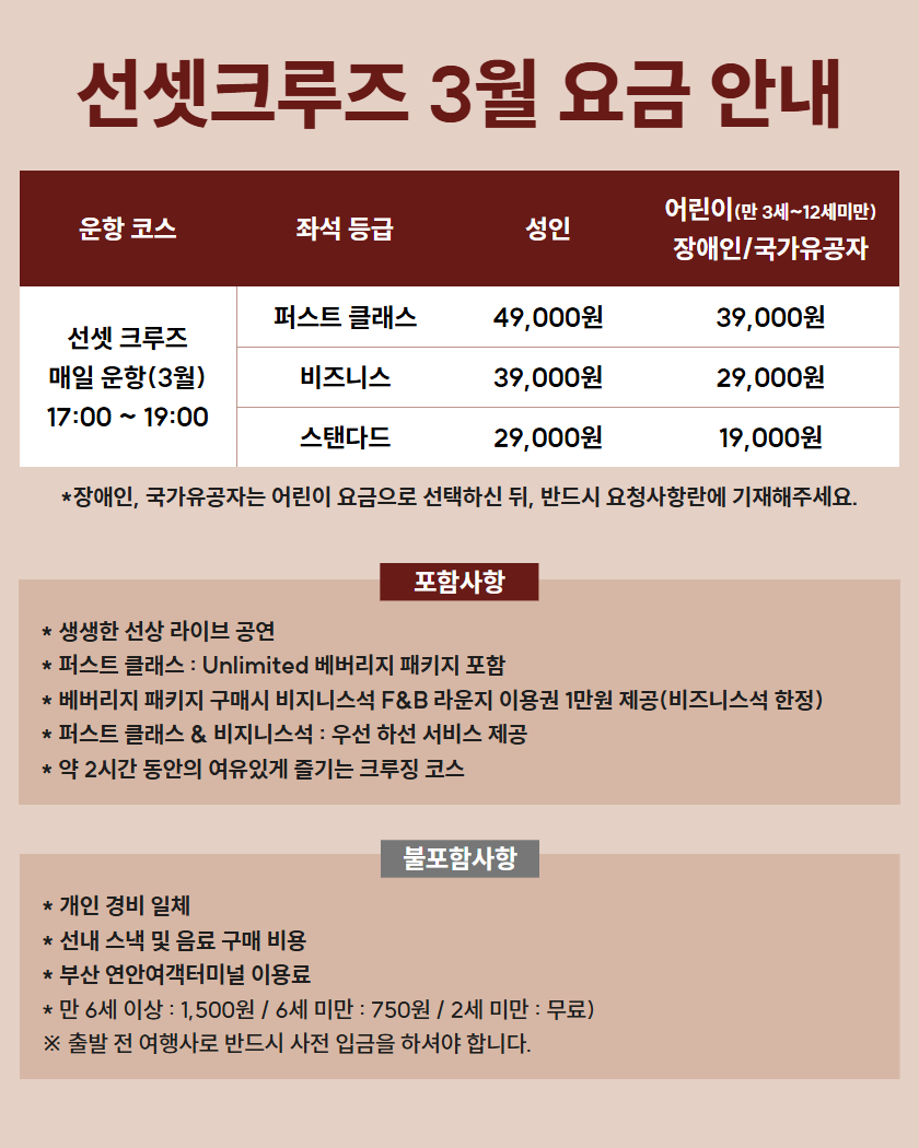 3월 매일 17시 출항