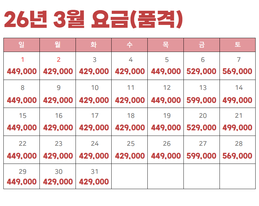 (출발일 기준 적용 / 변동 시 추가 비용 발생 가능)