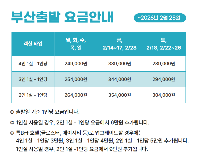 성인 25,000원 / 청소년 20,000원 / 소아 18,000원