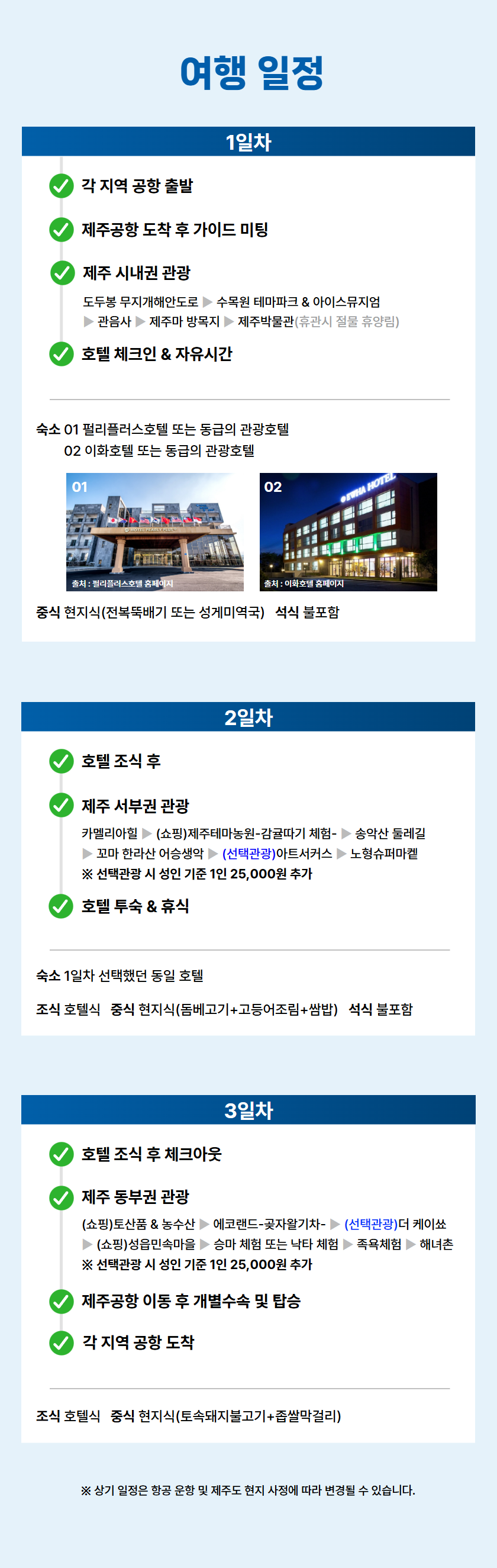 ▪️ 부산·서울·대구·청주·광주 출발 제주 2박 3일 패키지