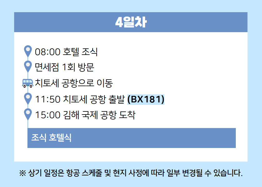 3️⃣ 항공 스케줄 또는 현지 사정에 따라 일정이 일부 변경될 수 있습니다.