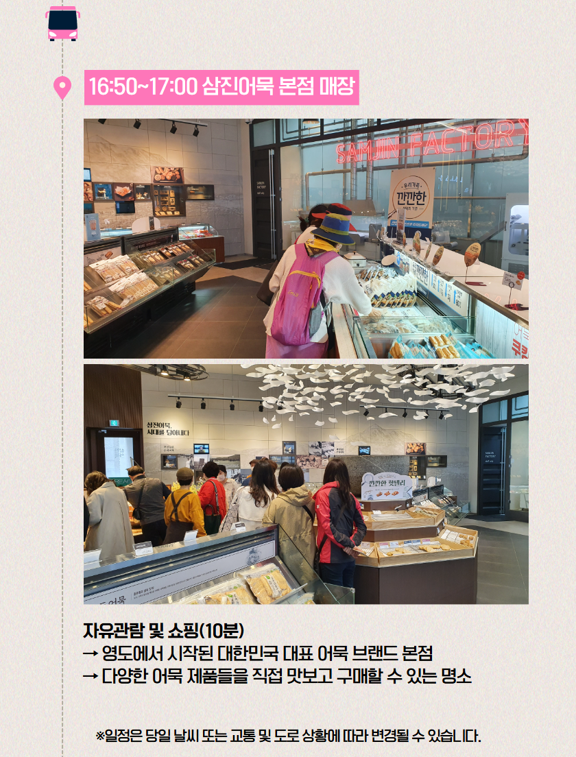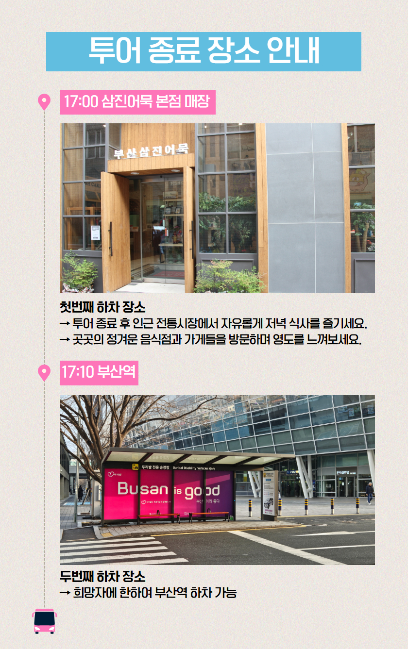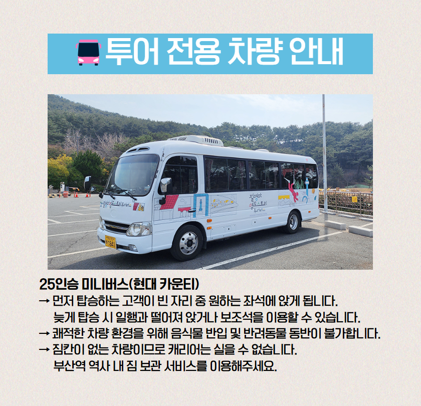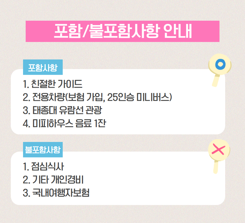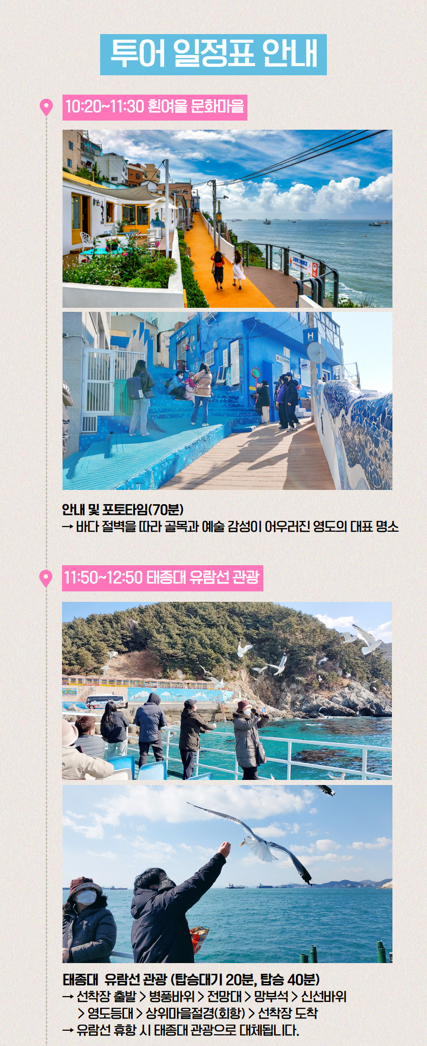 · 날씨의 영향으로 유람선 결항될 경우, 태종대 자유시간으로 대체되며 유람선 비용 9,000원 환불해드립니다.
