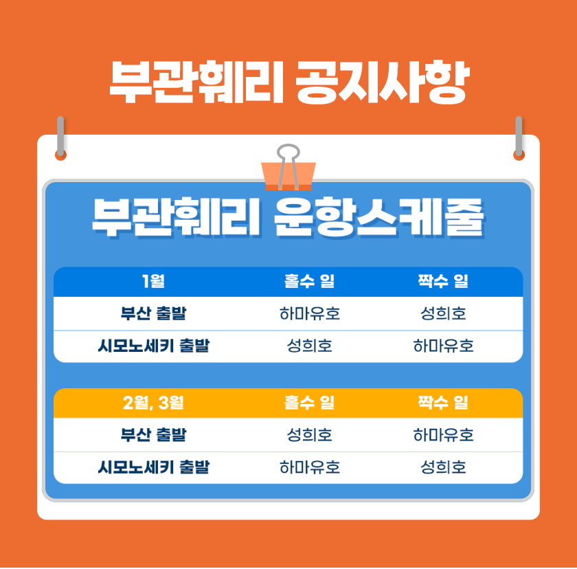 부산 시모노세키 부관훼리 4박5일 왕복탑승권