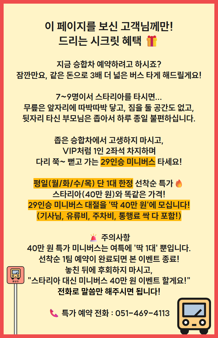 기사포함 벤츠 스프린터 부산시내 일 8시간 기준