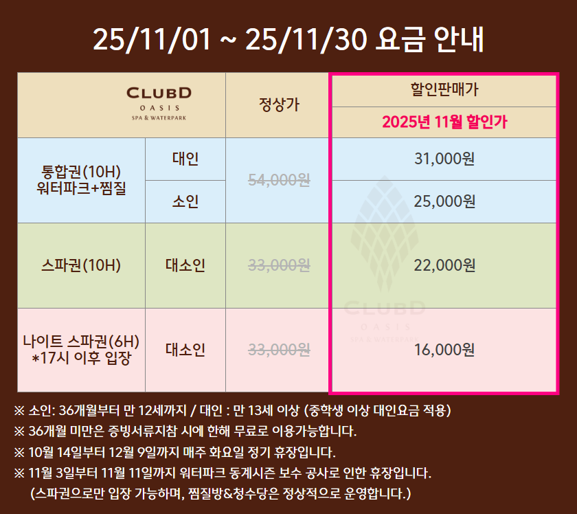 ※ 시설별로 운영요일 및 시간이 다릅니다. 반드시 확인 후 이용해주세요.