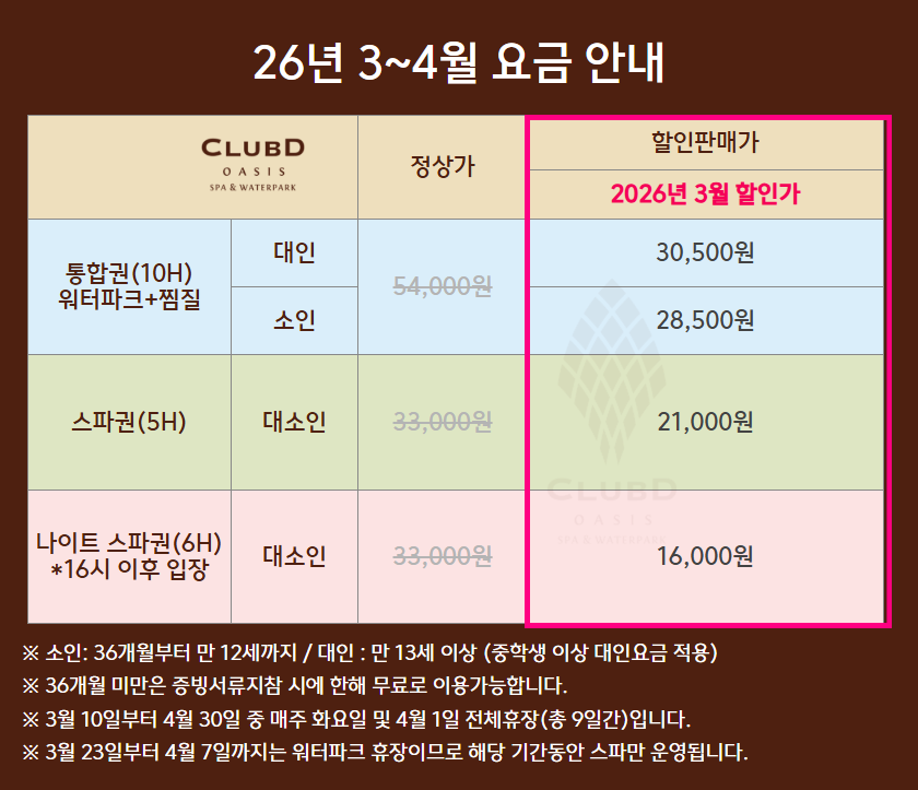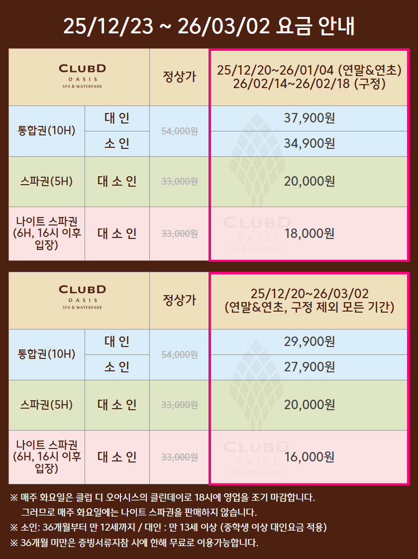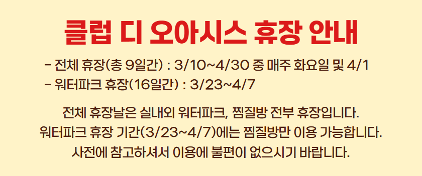 말씀주신대로 클럽 디 오아시스는 워터파크와 찜질을 동시에 즐길 수 있어 여름 뿐만 아니라 겨울에도 이용하기 좋답니다 ㅎㅎ! 즐거운 시간 보내셨다니 저도 기분이 좋네요 ♥ 항상 좋은 상품을 제공할 수 있도록 노력하는 여행특공대가 되겠습니다.