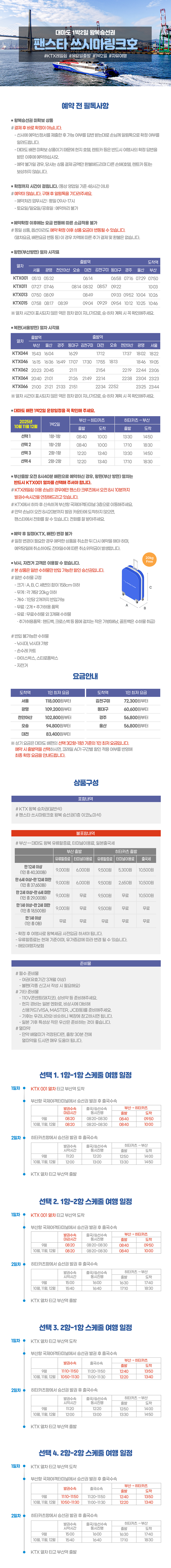 본 상품은 코레일 홈페이지 또는 코레일톡 어플에서만 예약 가능합니다.