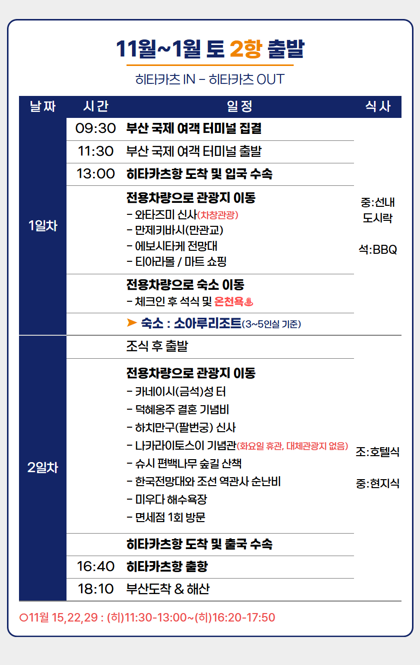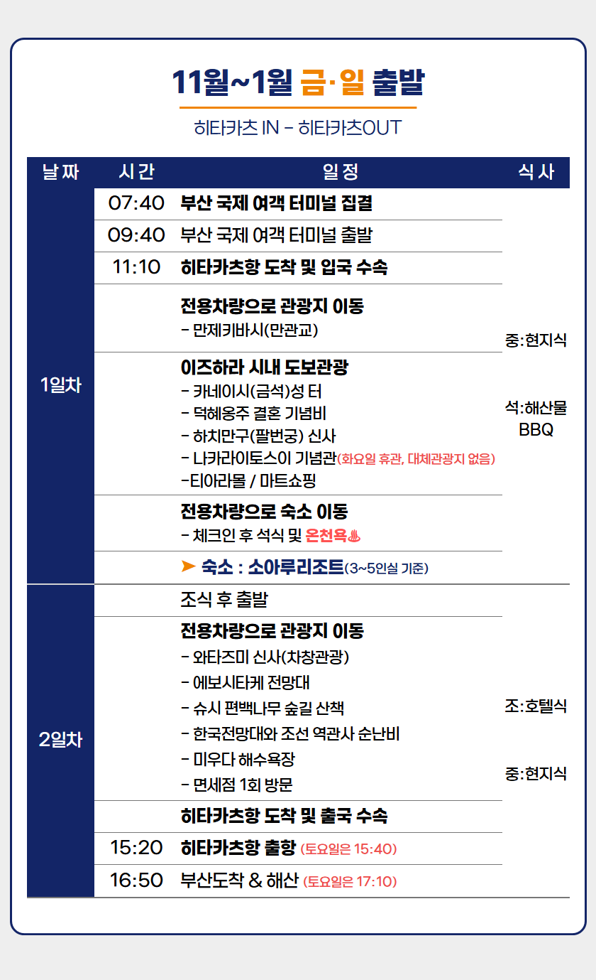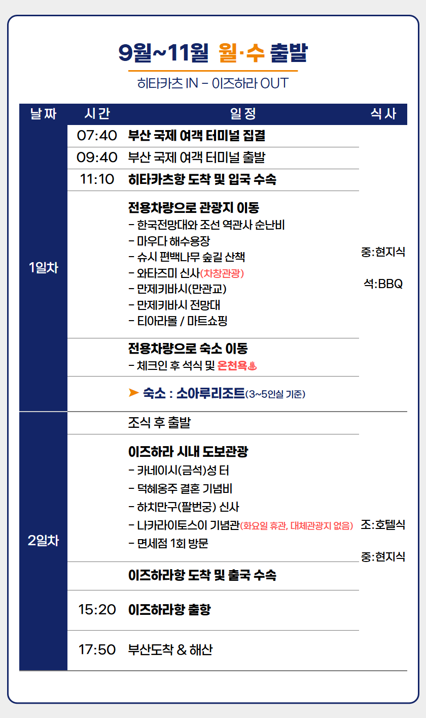 ✔ 대마도 여행 중 기상악화로 돌아오는 편이 결항 시, 현지에서 연장되는 모든 숙식료는 고객부담입니다.