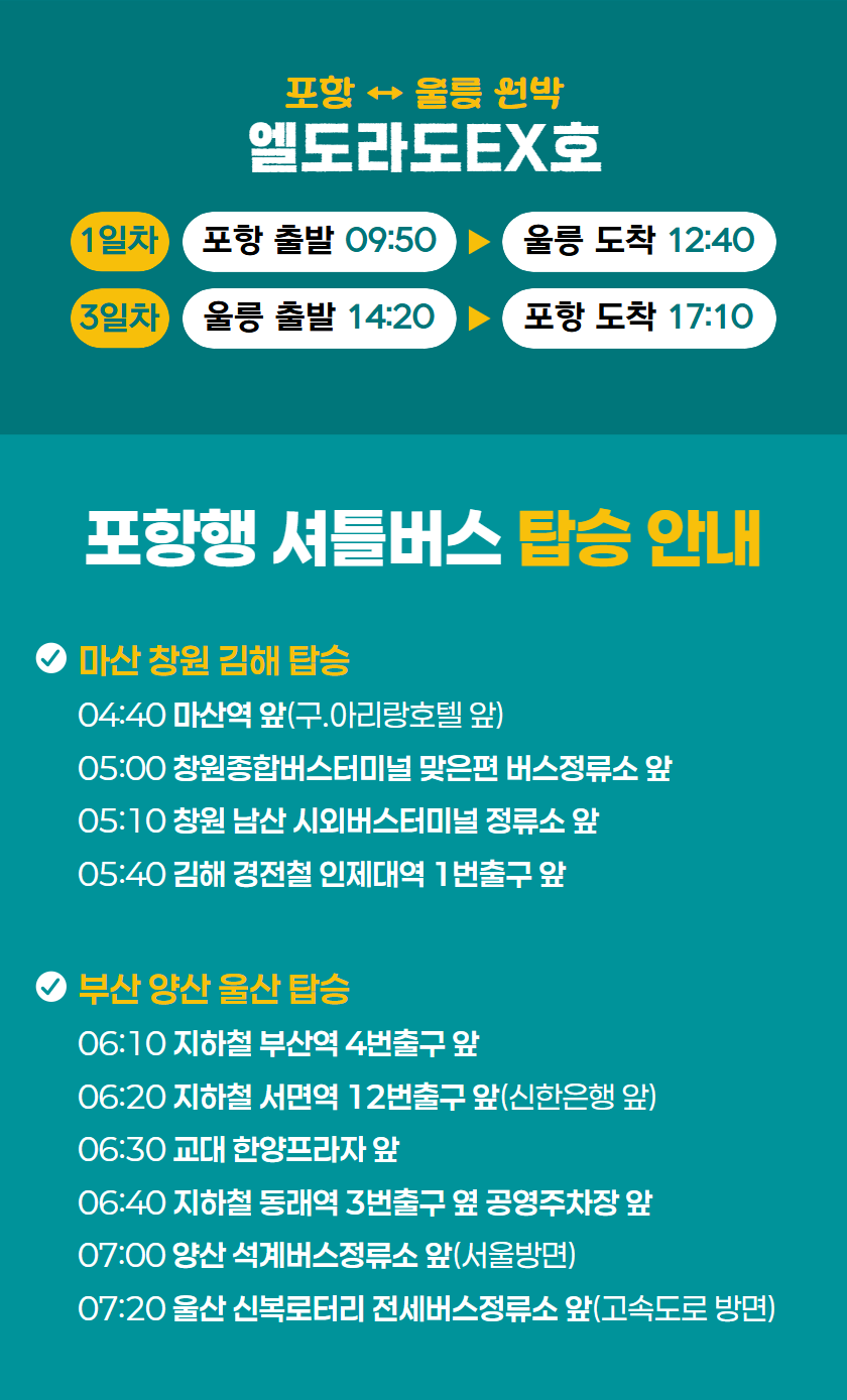 ▪️ 포항 여객터미널 출발 울릉도 여객선 이용