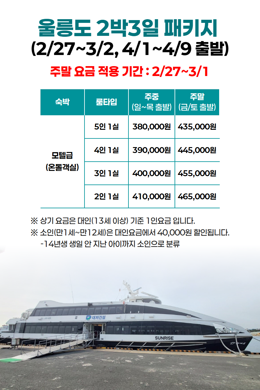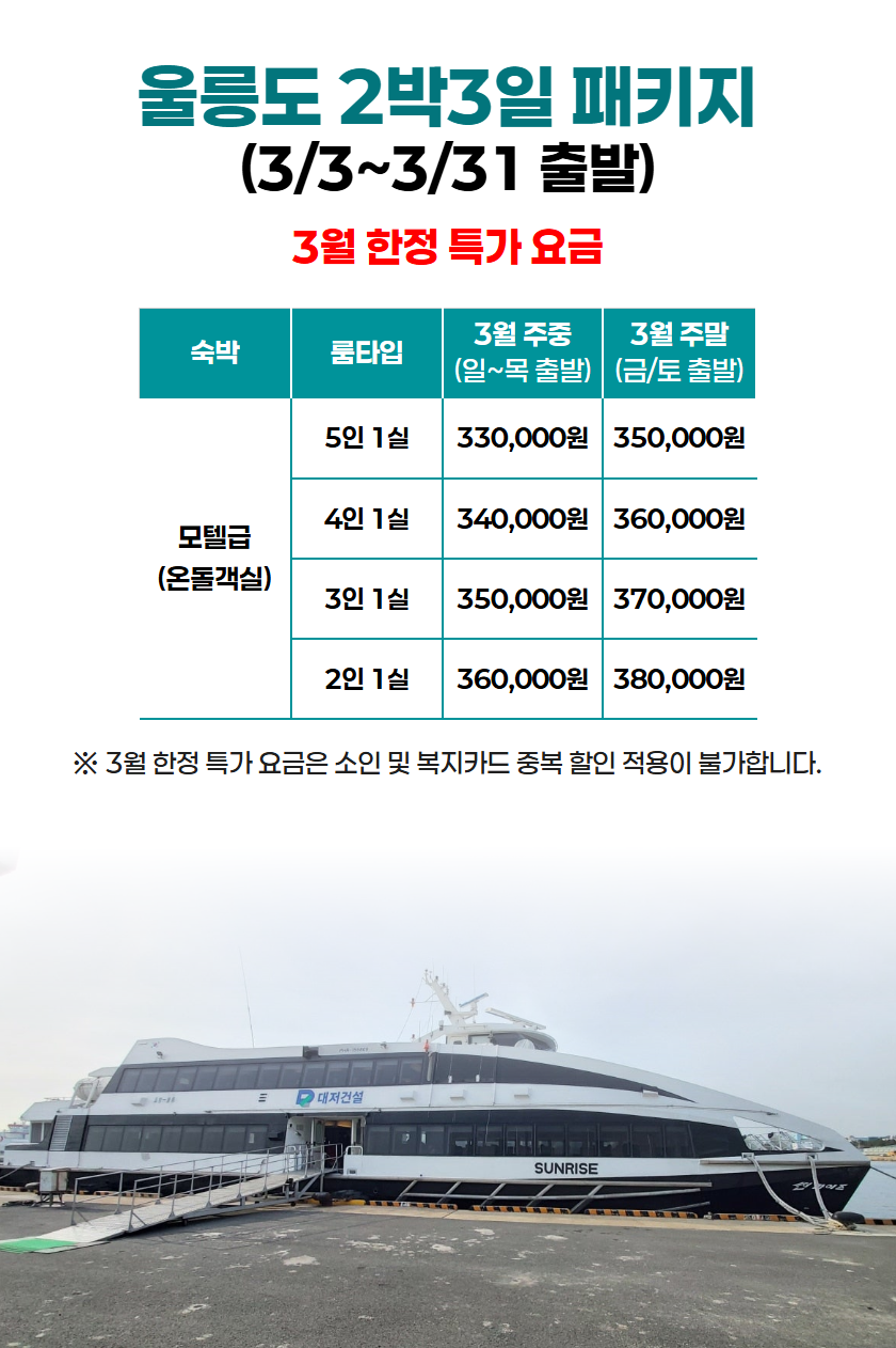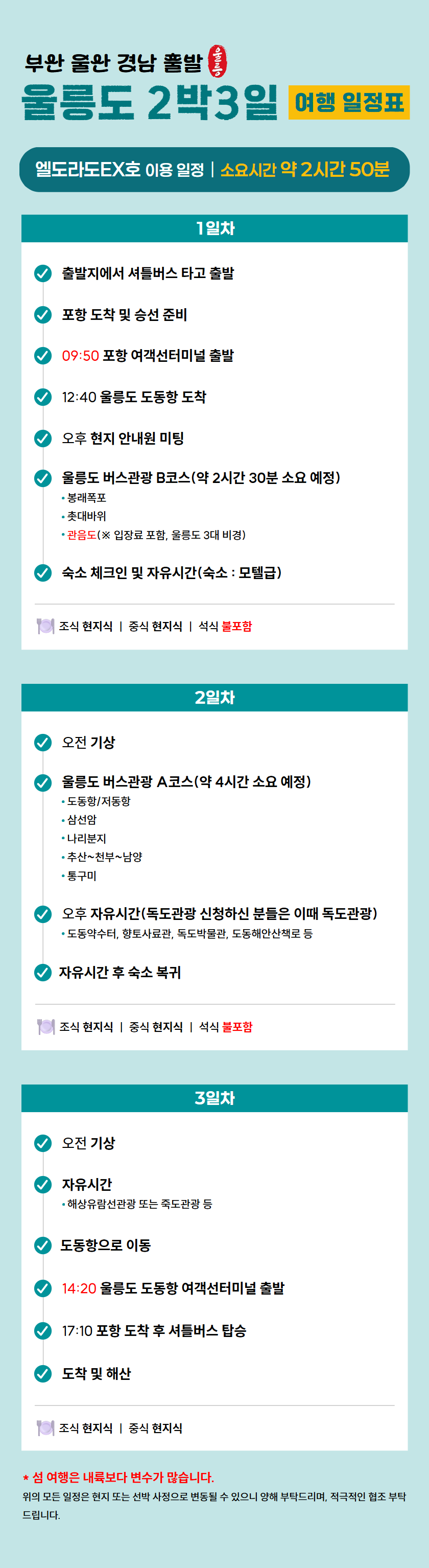 부산 울산 경남 출발 울릉도 2박 3일 패키지