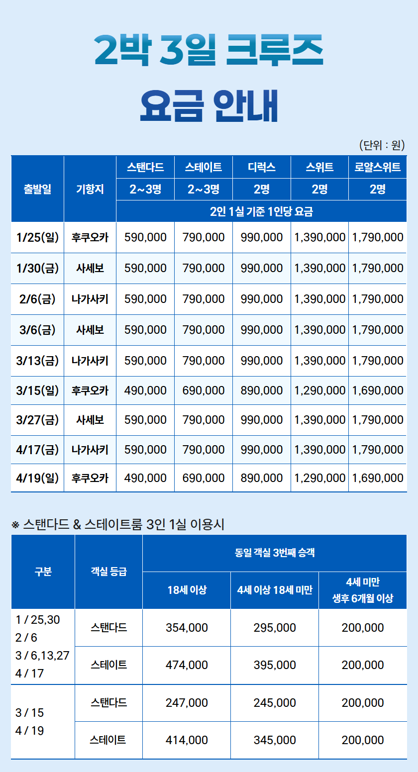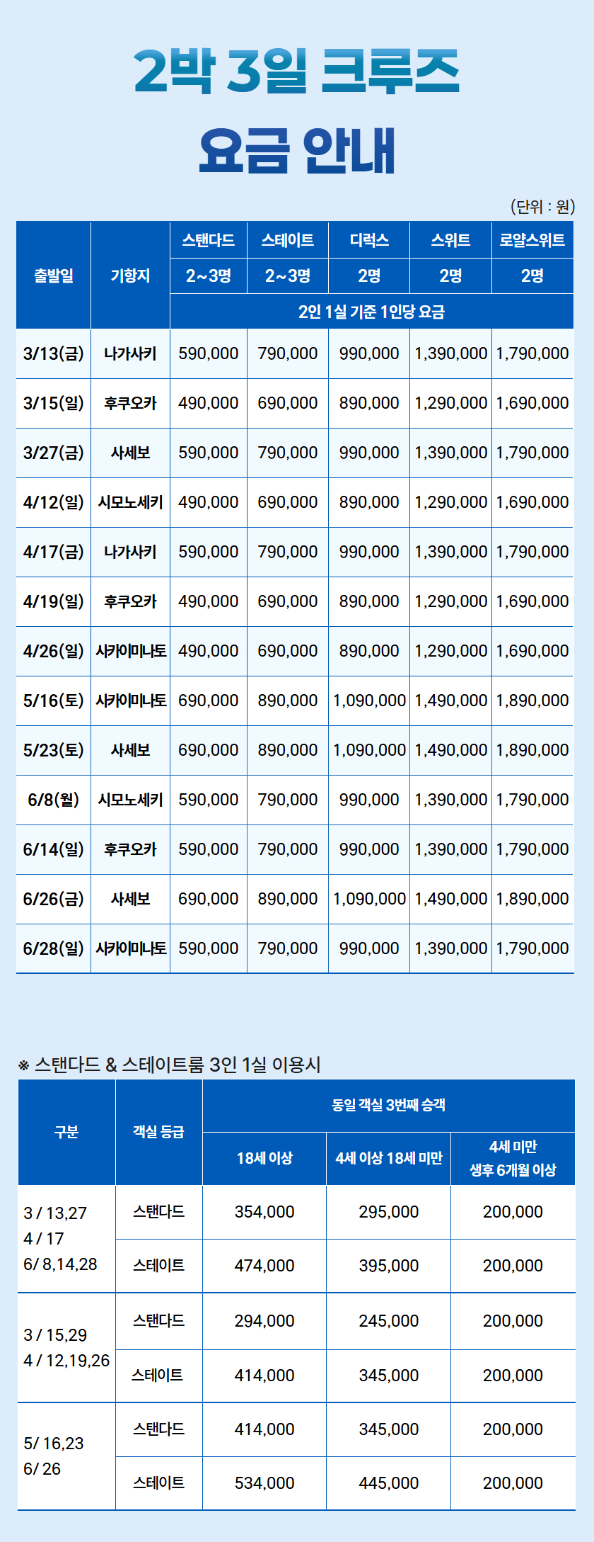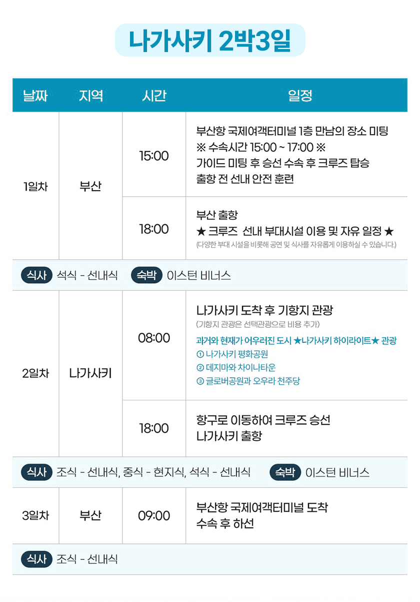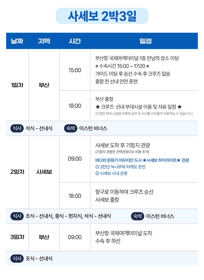 부산출발 일본 크루즈 여행 이스턴비너스호 2박3일