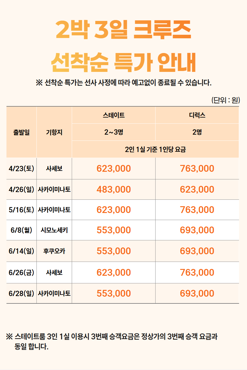 해외패키지 > [부산출발] 크루즈여행 > 부산출발 일본 크루즈 여행 이스턴비너스호 2박3일