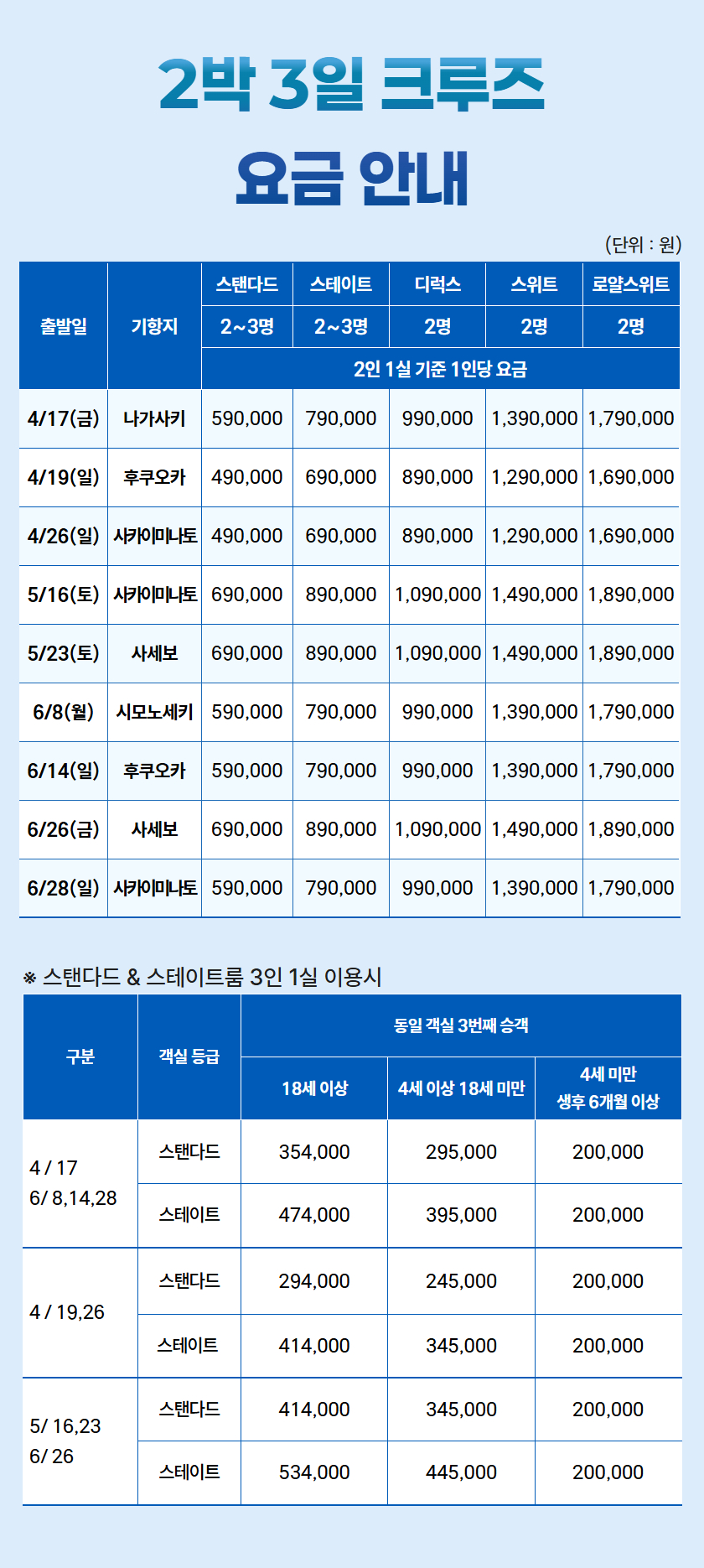 단, 매월 셋째주는 대한해협 코스로 운행